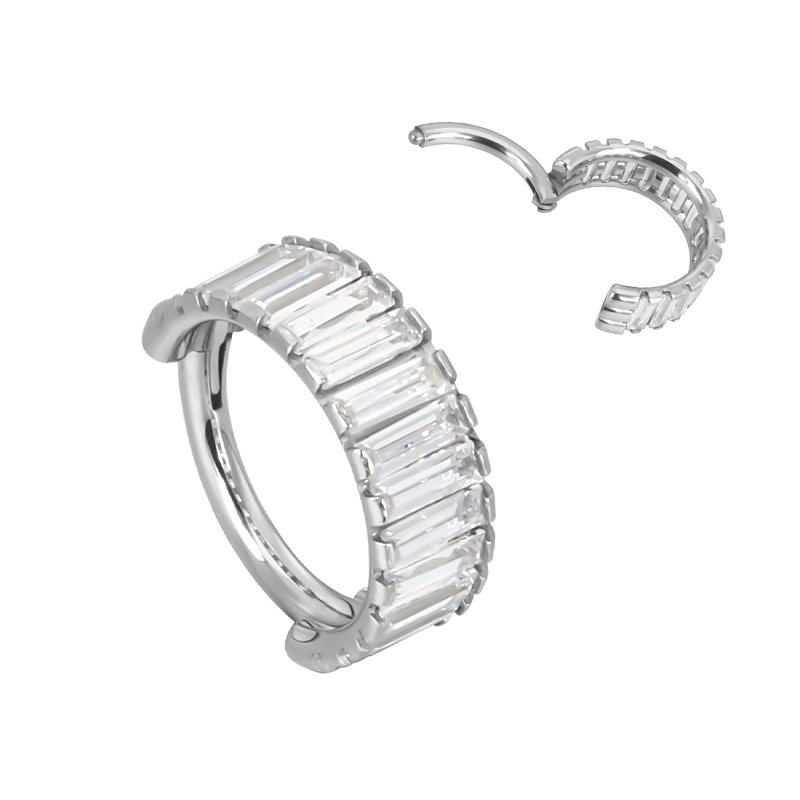 Titanium Hinged Segment Hoop Ring With Rectangle CZ Paved Side