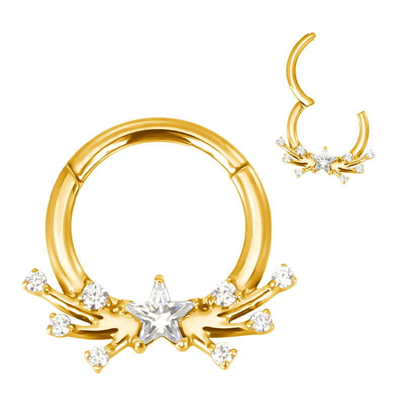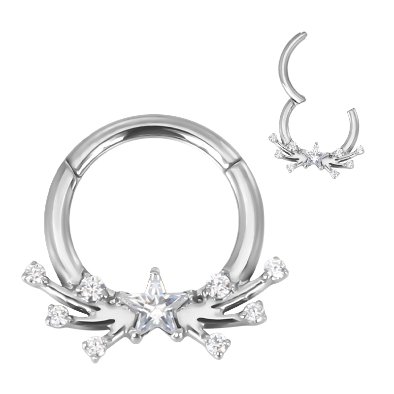 Titanium Hinged Segment Hoop Ring With Star CZ Center
