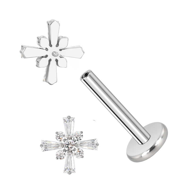 Titanium 4 Baguette CZ and 5 CZ Internally Threaded Top