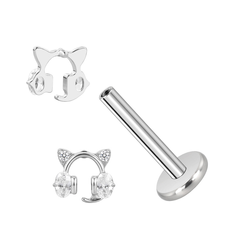 Titanium CZ Cat Ear Headphones Internally Threaded Top