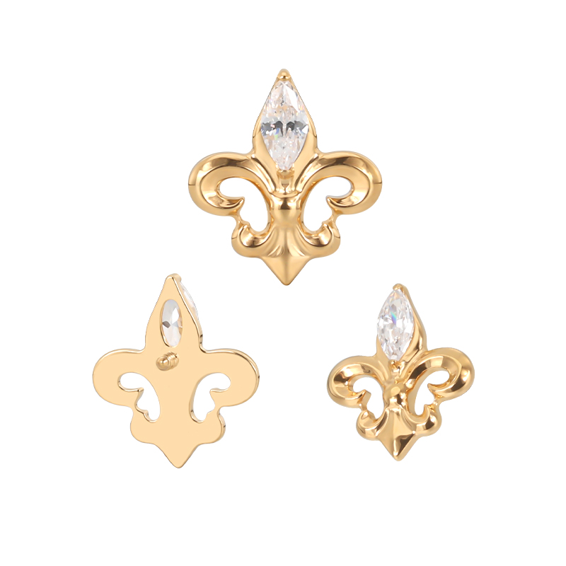 Titanium Fleur De Lis With Marquise CZ Center Internally Threaded Top