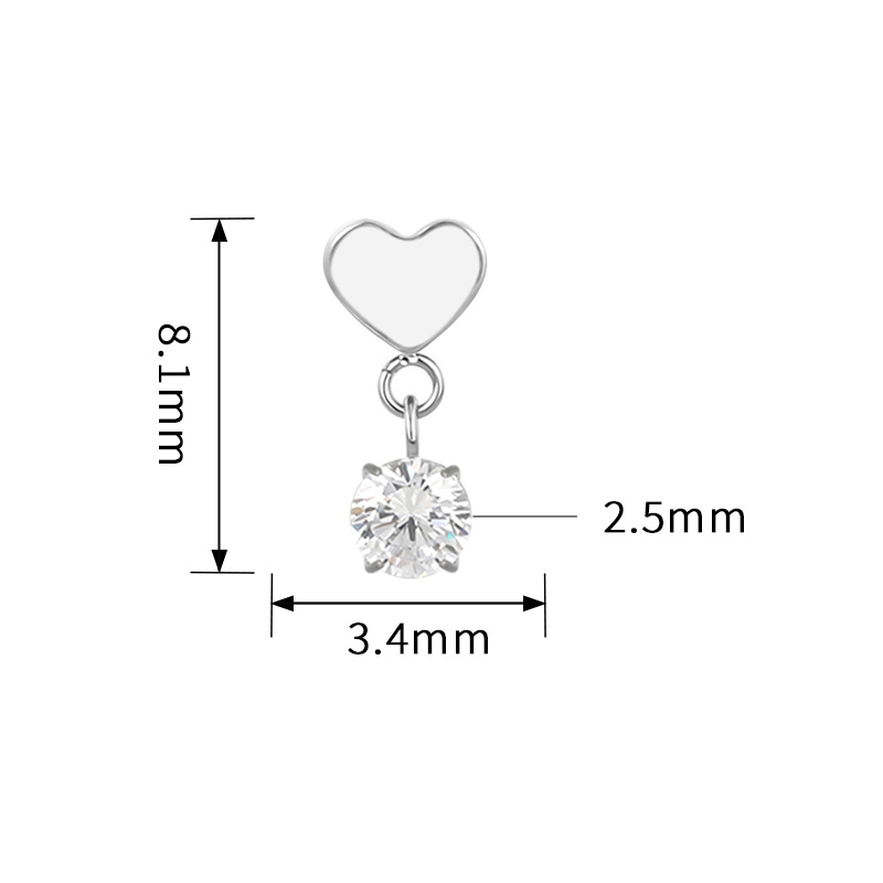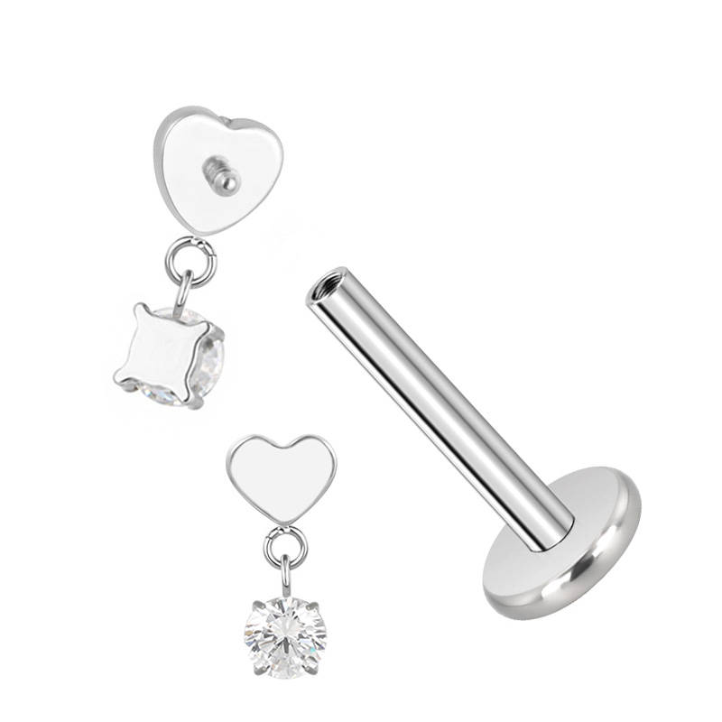 Titanium Heart With CZ Dangle Internally Threaded Top