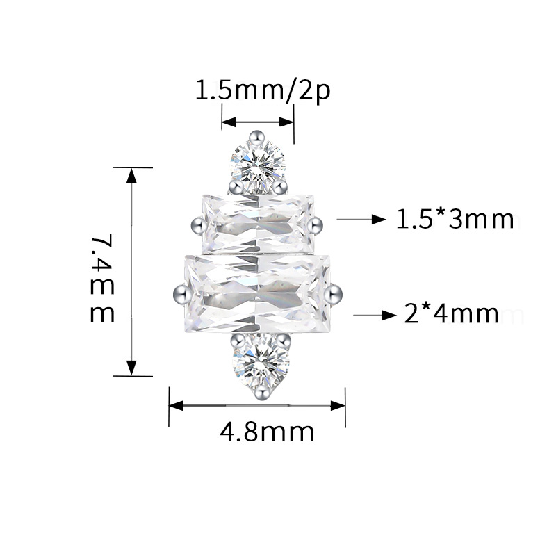 Titanium Push In 2 Rectangle CZ and 2 CZ Threadless Top