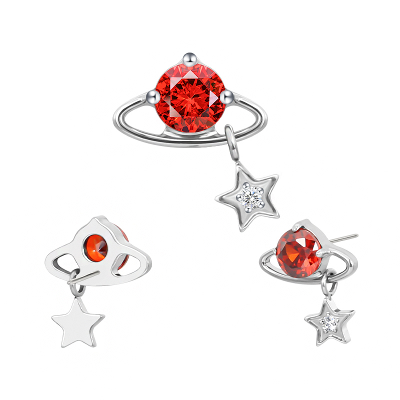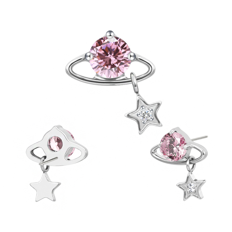 Titanium Push In CZ Planet With Star Dangle Threadless Top