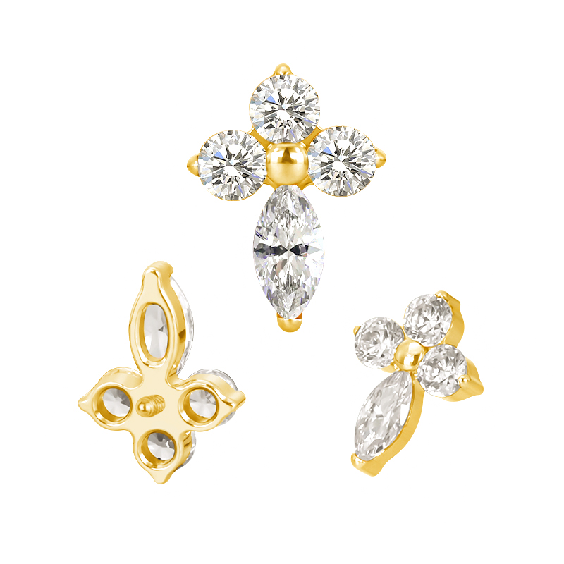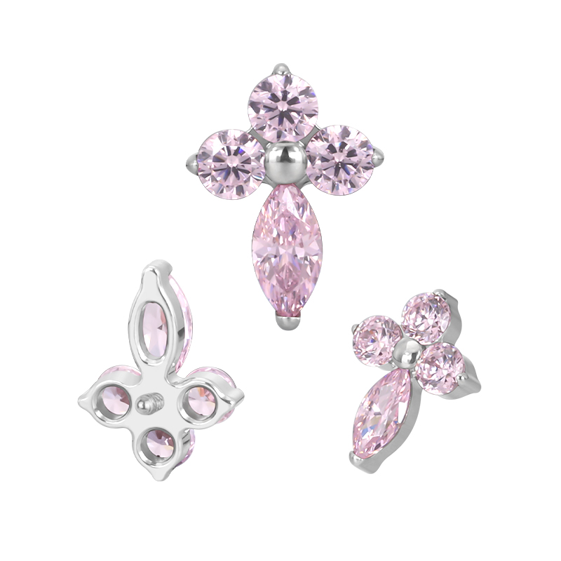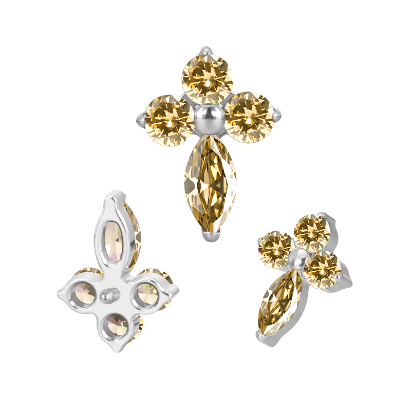 Titanium 3 CZ and Marquise CZ Cross Internally Threaded Top