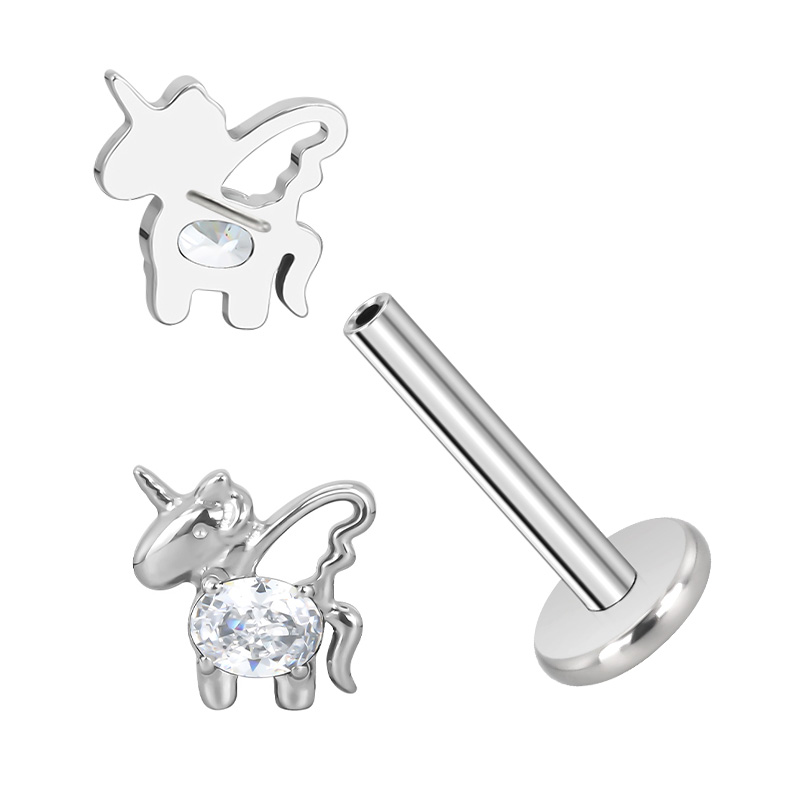 Titanium Push In Unicorn With CZ Center Threadless Top