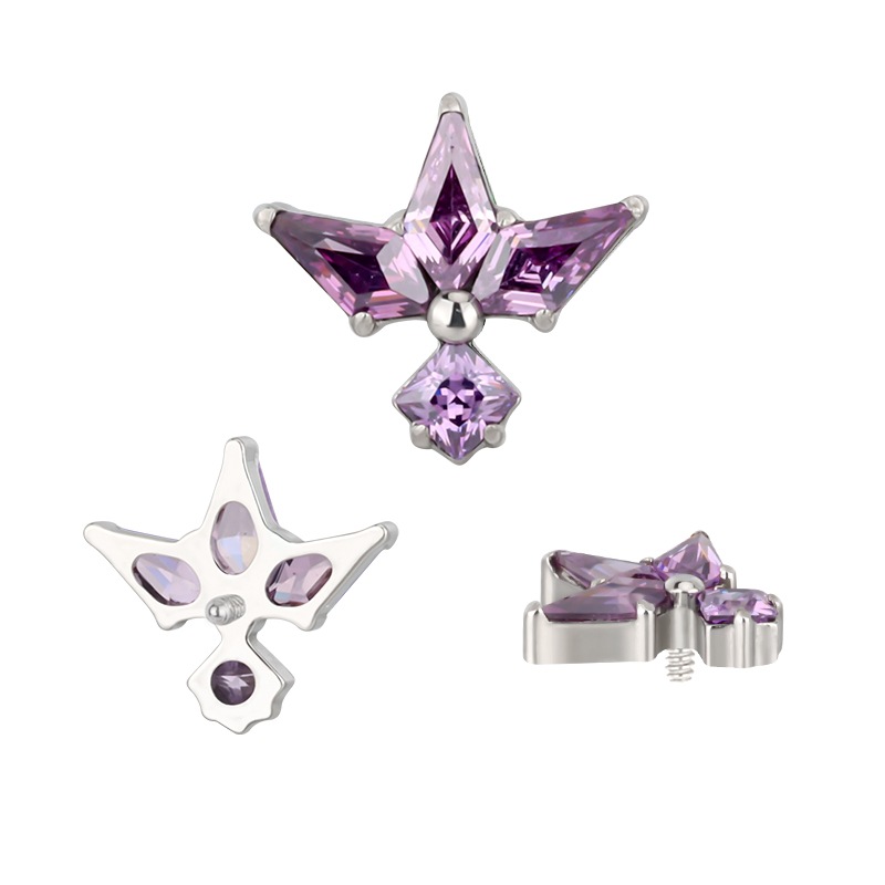 Titanium CNC Set 3 Kite CZ and Square CZ Internally Threaded Top