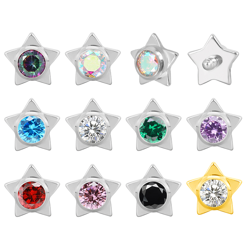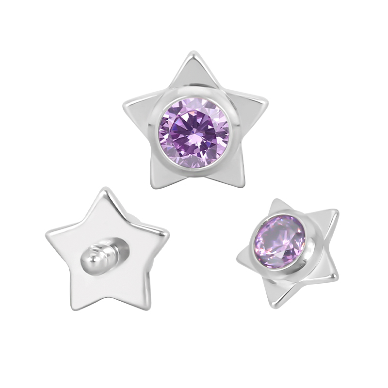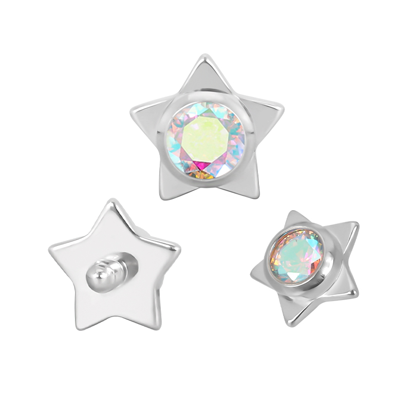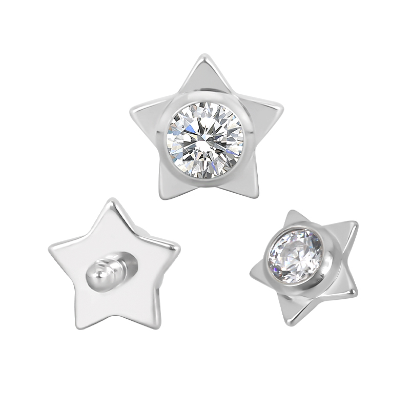 Titanium Star WIth CZ Center Internally Threaded Top