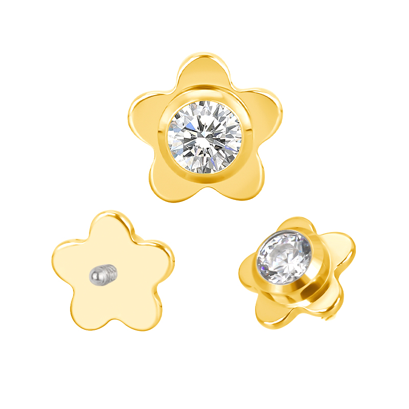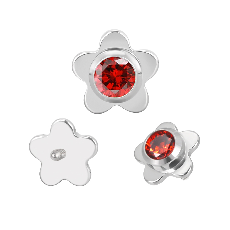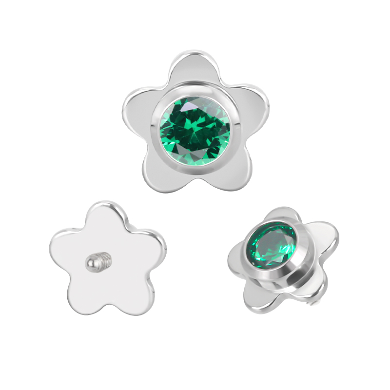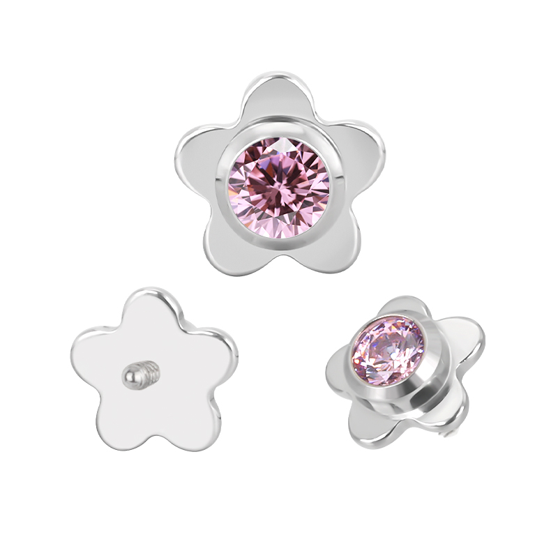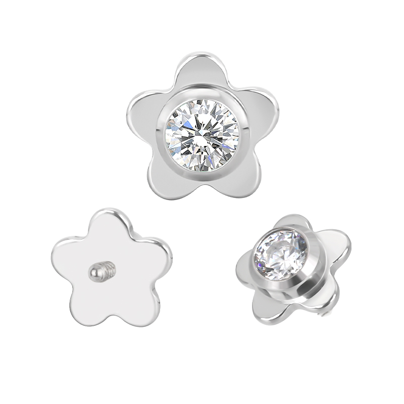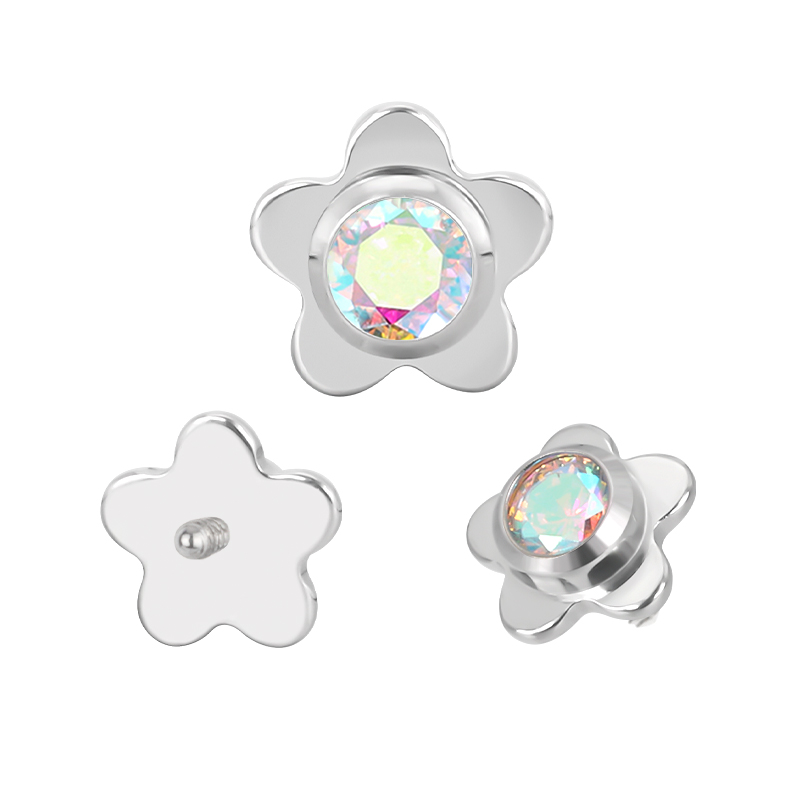 Titanium Flower With CZ Center Internally Threaded Top