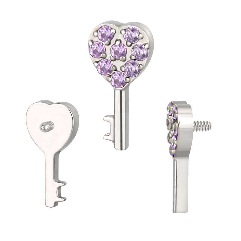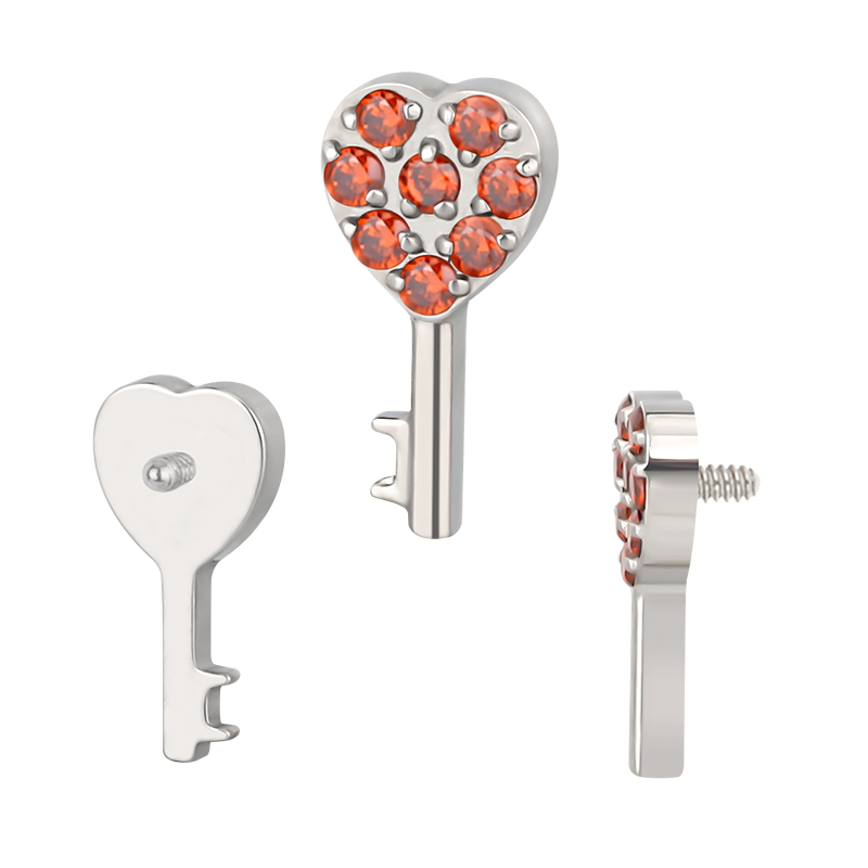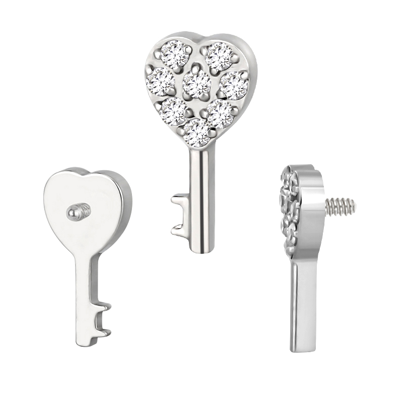 Titanium CZ Paved CNC Heart Key Internally Threaded Top