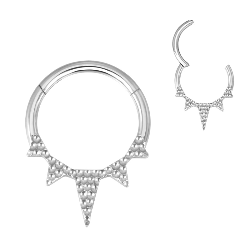 Titanium 5 Hammering Spikes Hinged Segment Hoop Ring