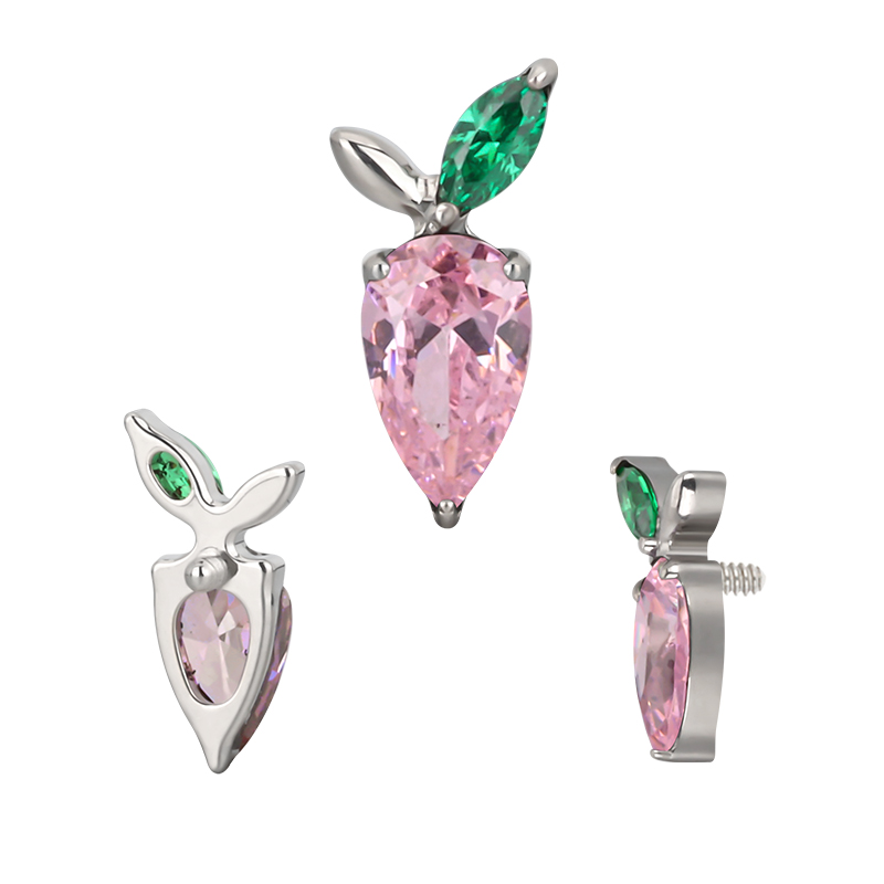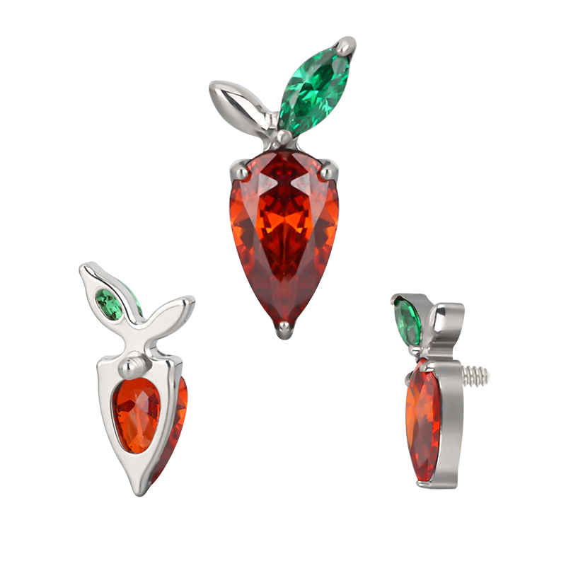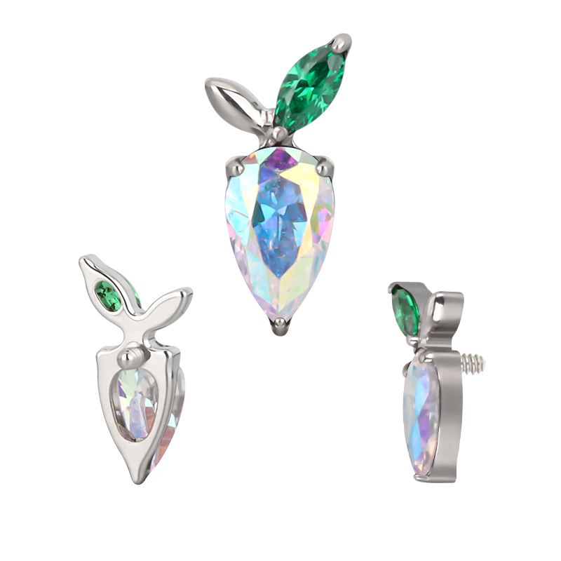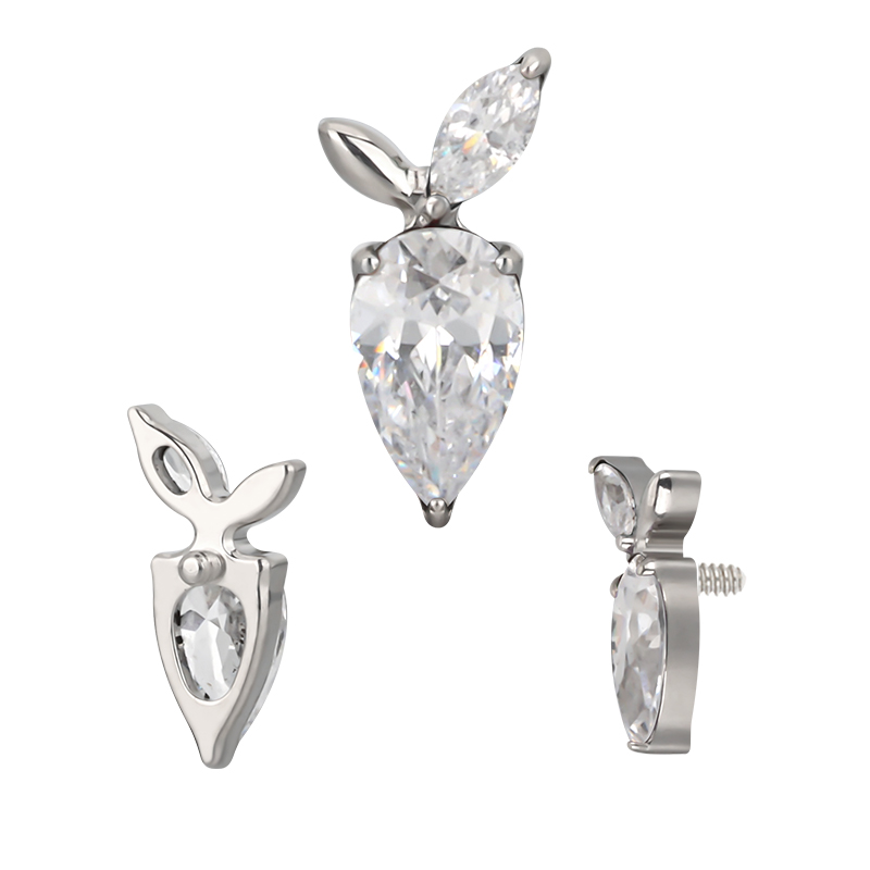 Titanium CNC Set Carrot With Pear CZ Center Interanlly Threaded Top
