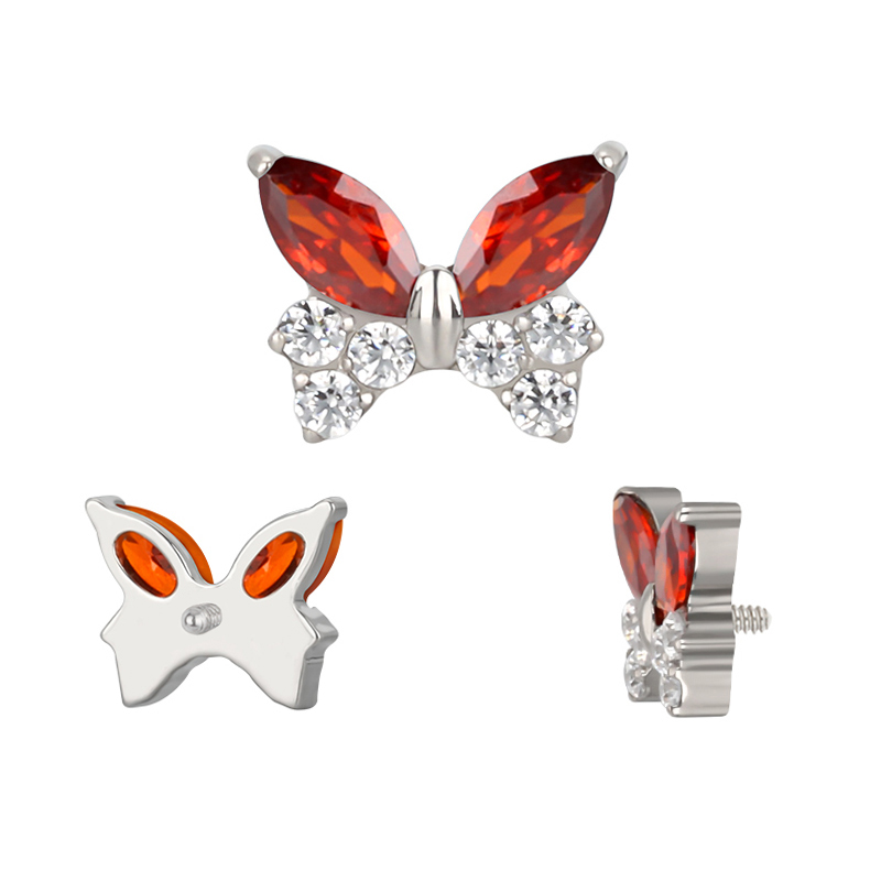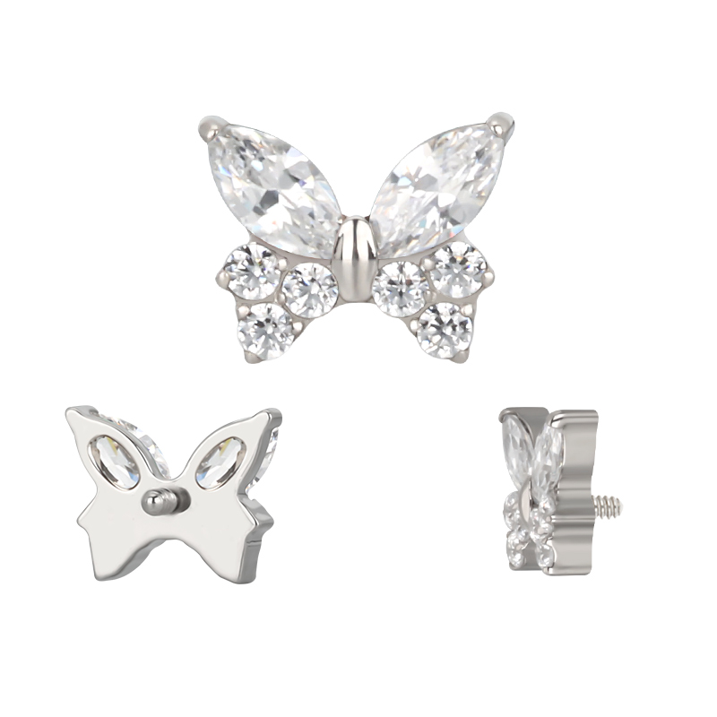 Titanium CNC Set CZ Butterfly Internally Threaded Top