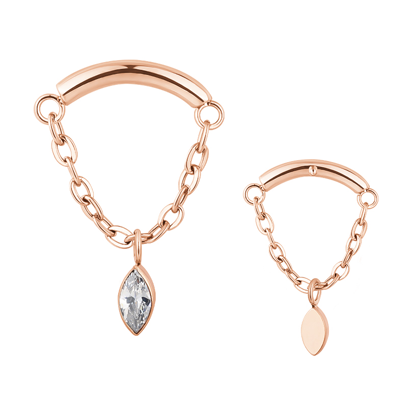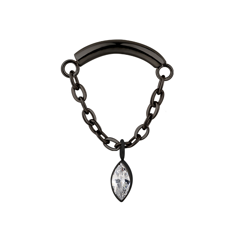 Titanium Chain Hangs Curved Bar With Marquise CZ Center Inernally Threaded Top