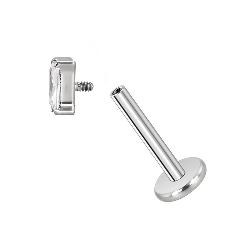 Titanium CNC Set Rectangle CZ Interanlly Threaded Top
