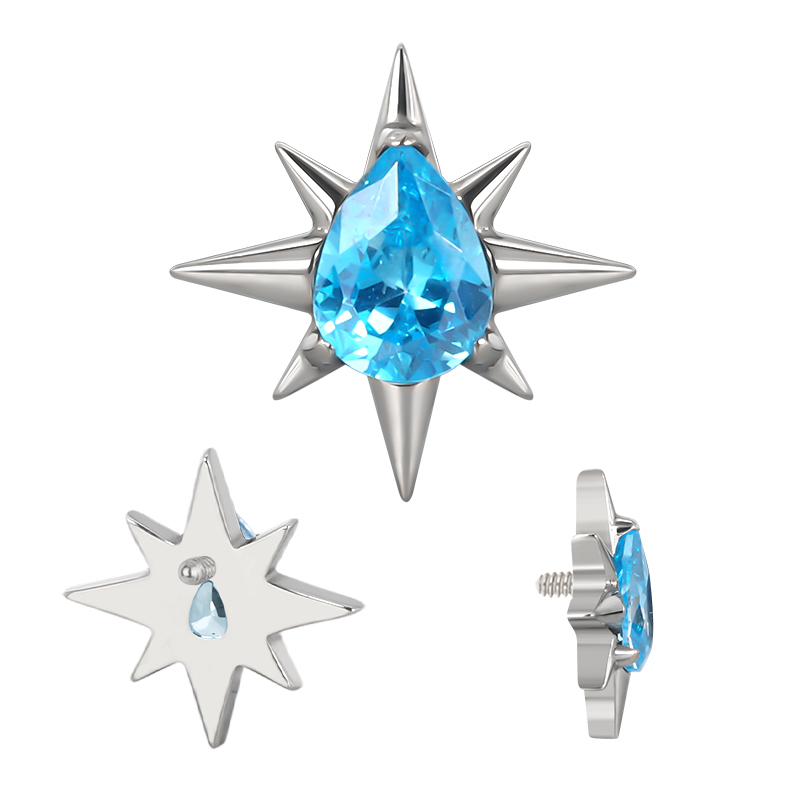 Titanium CZ Star With Pear CZ Center Interanlly Threaded Top