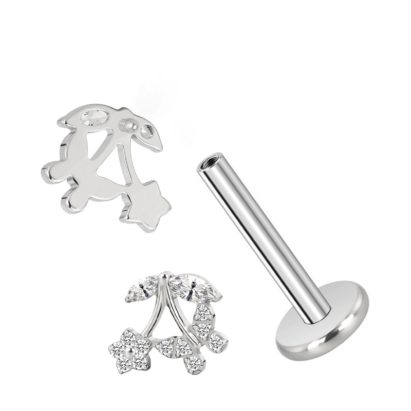 Titanium Thorny Heart With Pear CZ Center Interanlly Threaded Top