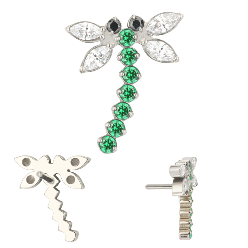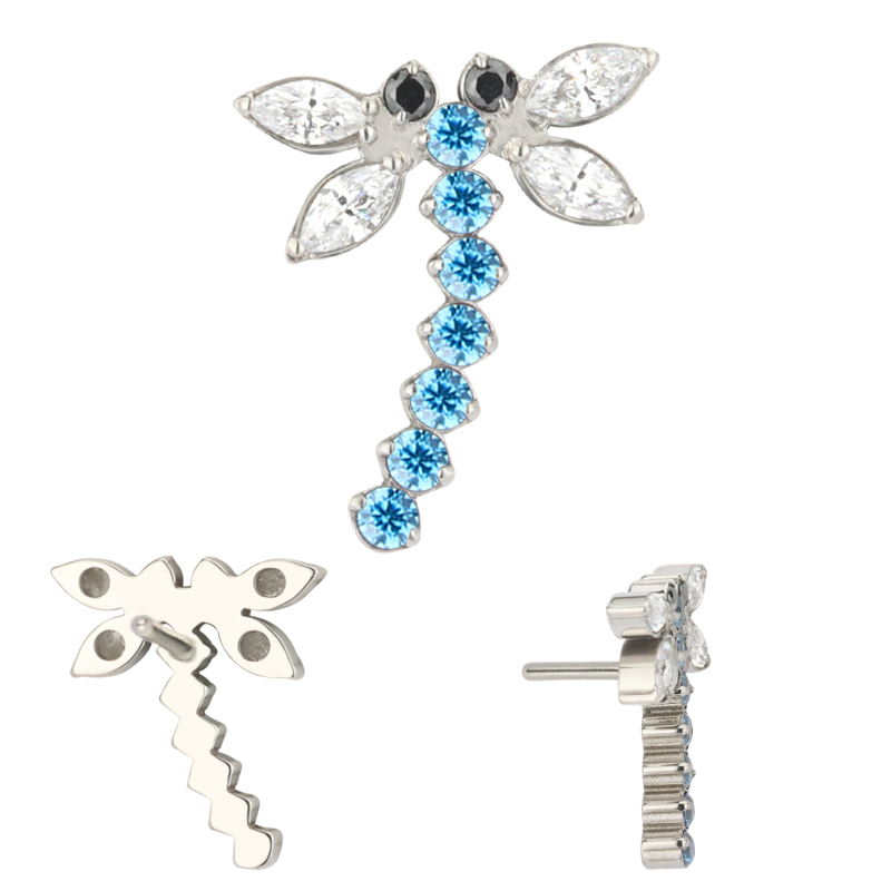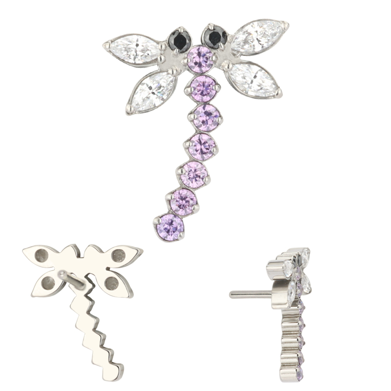 Titanium Push In CZ Pave Dragonfly Threadless Top