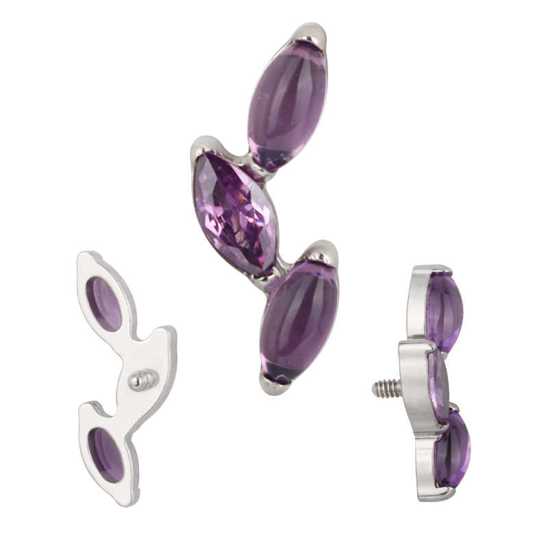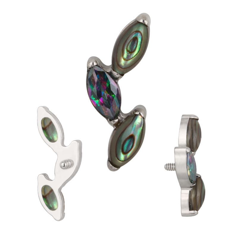 Titanium 3 Marquise Natural Stone Leaf Shape Internally Threaded Top