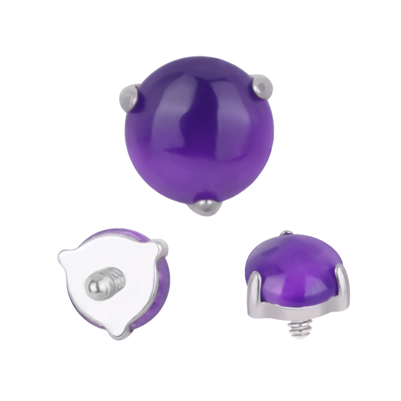 Titanium Prong Set Semi Precious Round Stones Internally Threaded Top