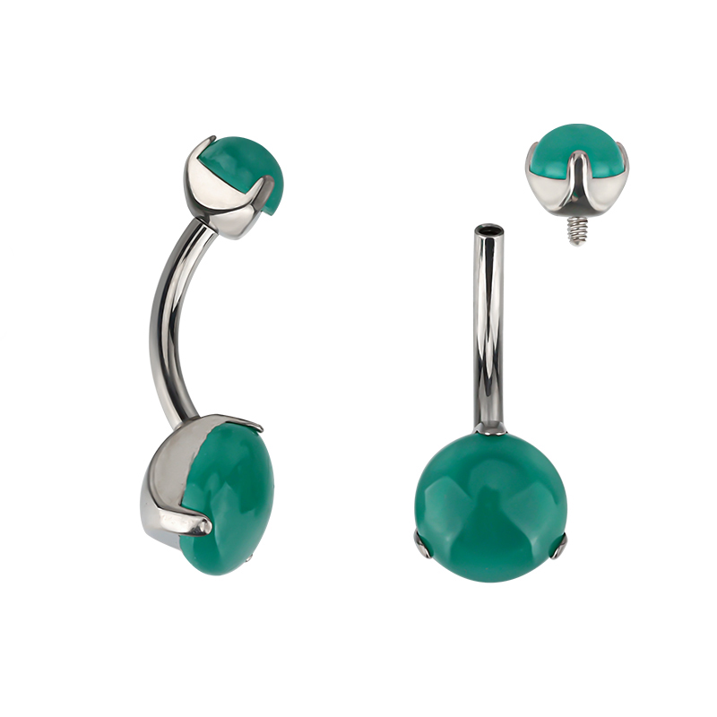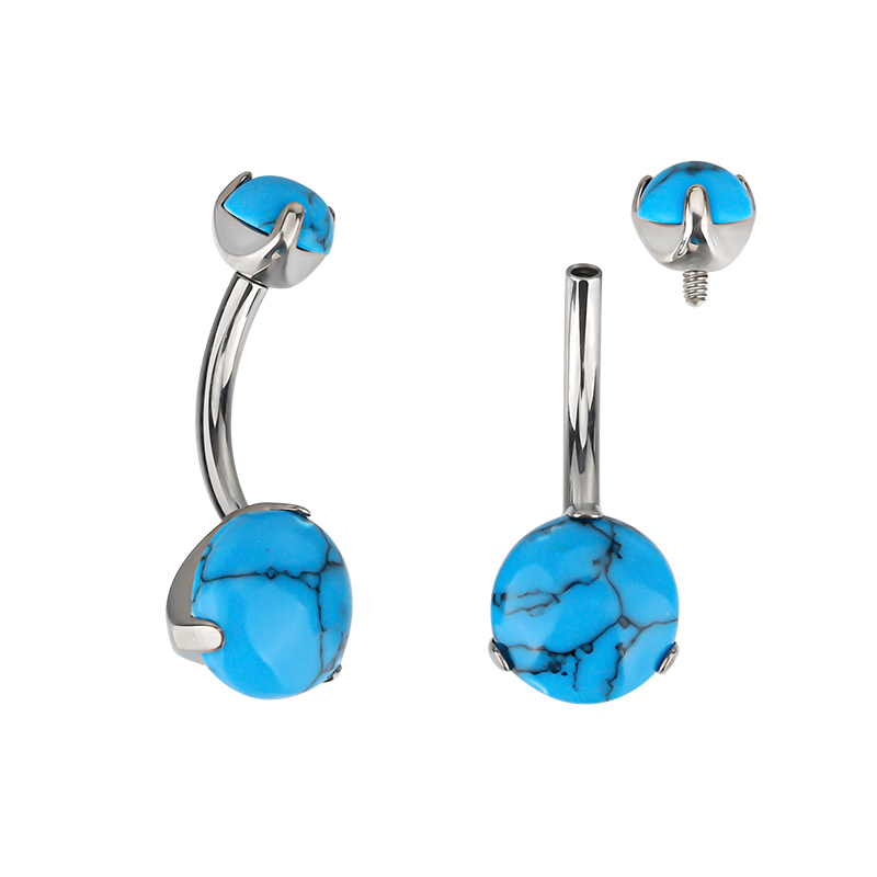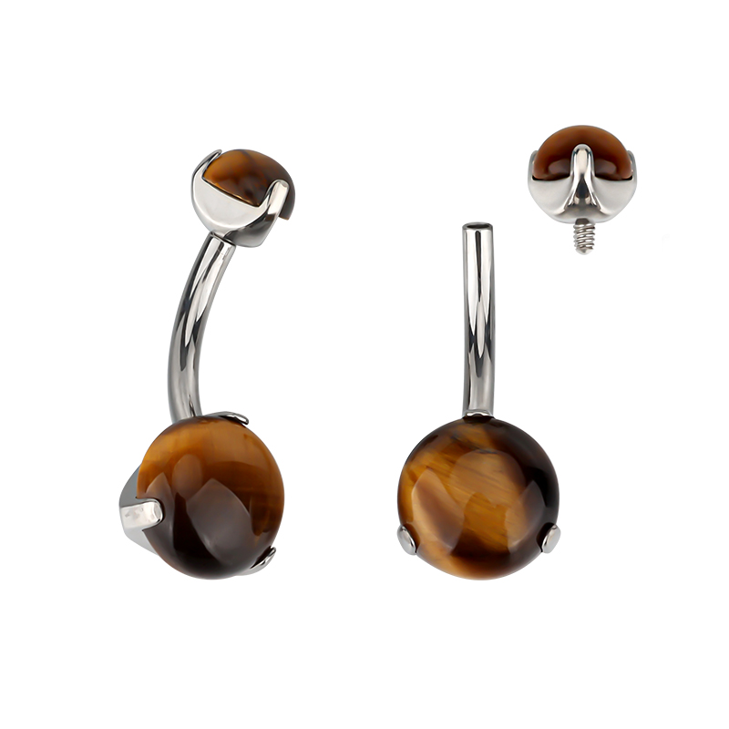Titanium Prong Set Natural Stone Belly Button Navel Ring
