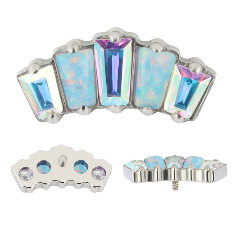 Titanium Push In 5 Opal Stone Rectangle Threadless Top