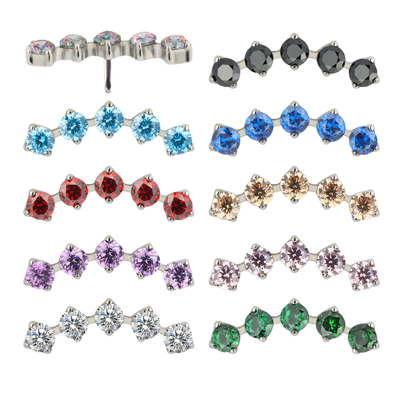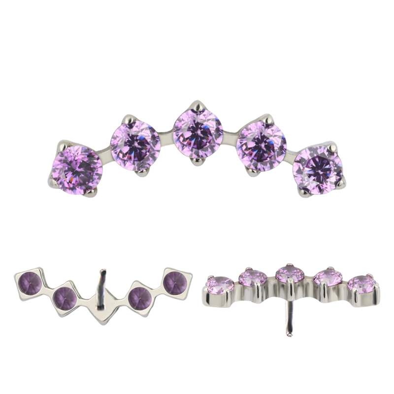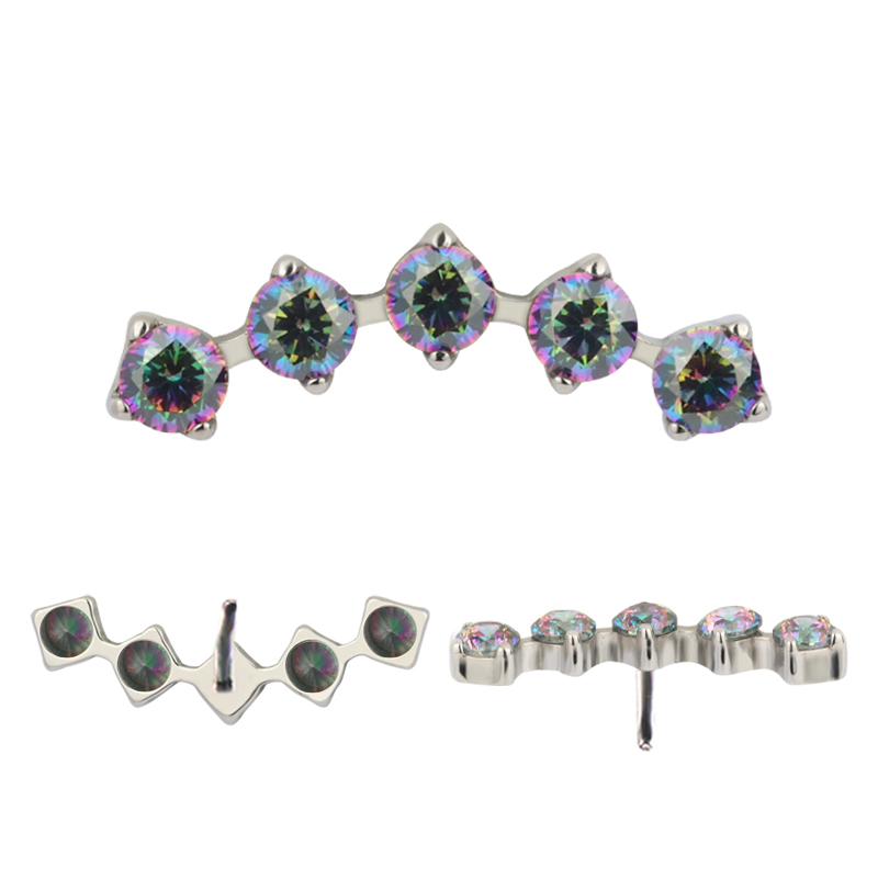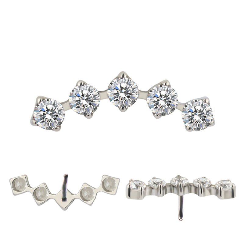 Titanium Push In 5 Prong Set CZ Stone Threadless Top