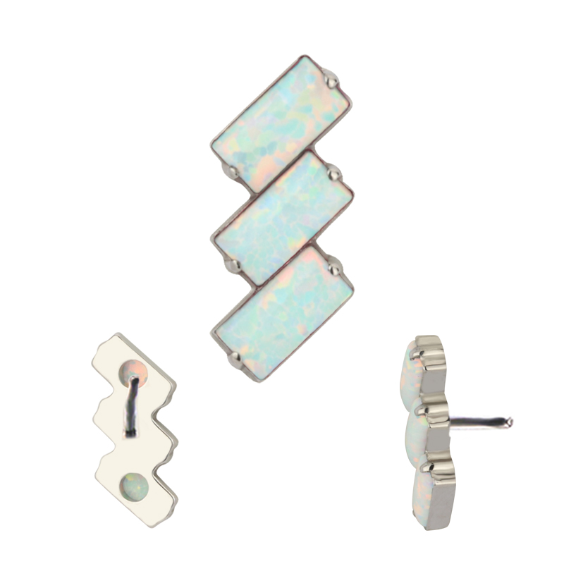 Titanium Push In 3 Bezel Set Rectangles Opal Stone Threadless Top