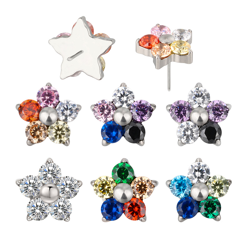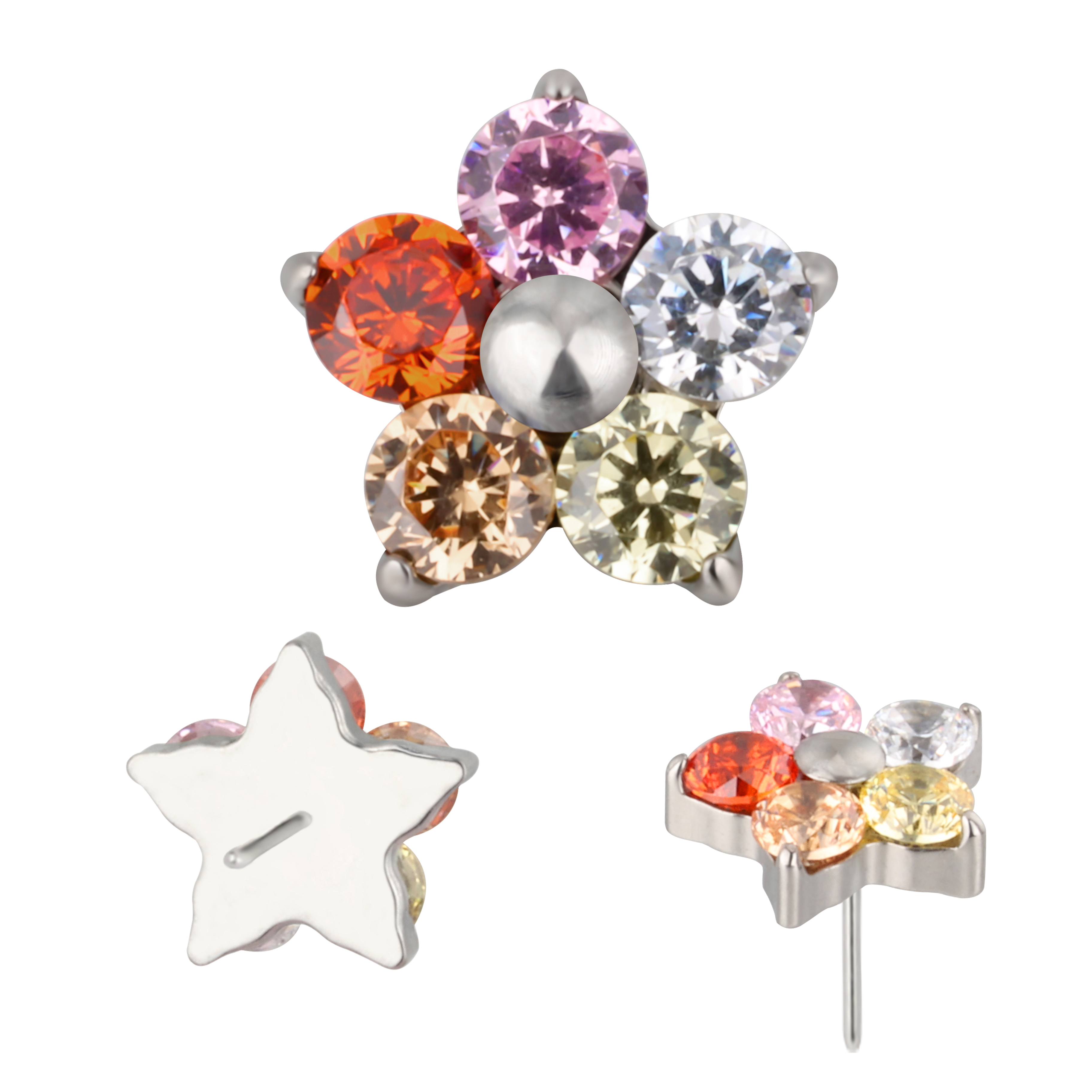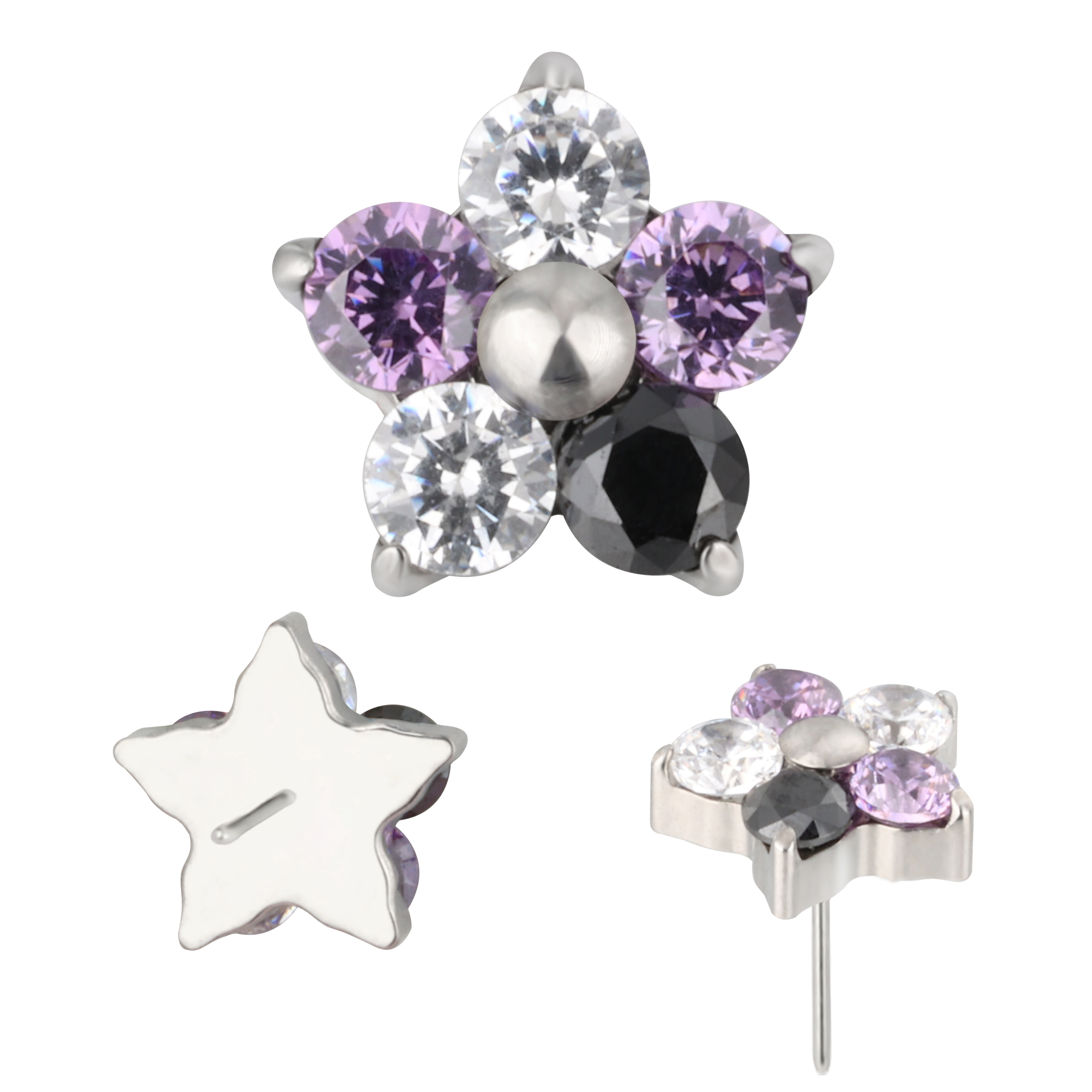 Titanium Push In 3 Prong Set CZ Flower Threadless Top
