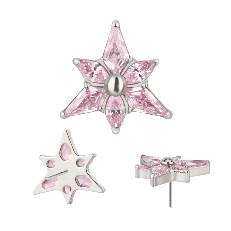 Titanium Push In CNC Set 3 Marquise CZ and 3 Kite CZ Threadless Top