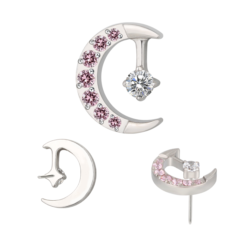 Titanium Push In CNC Set Moon With CZ Center Threadless Top