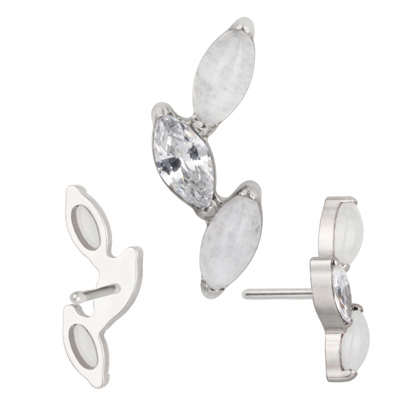 Titanium Push In 3 Marquise Natural Stone Leaf Shape Threadless Top