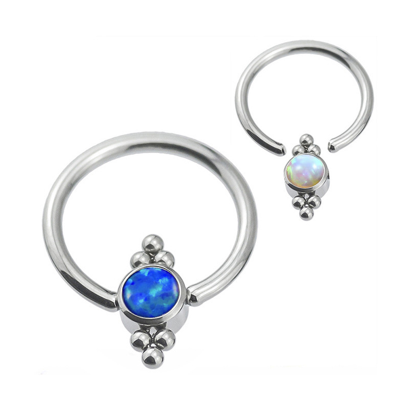 2 Tri-bead Clearuster with Bezel Opal Stone Captive Bead Rings