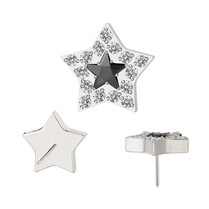 Titanium Push In CZ Paved Star With Star CZ Center Threadless Top