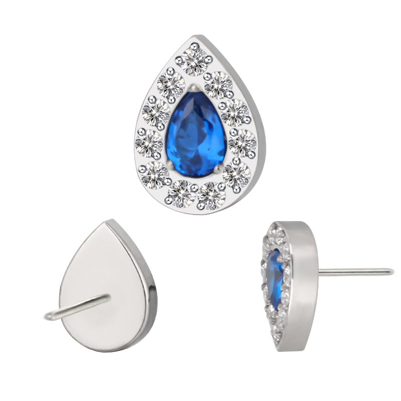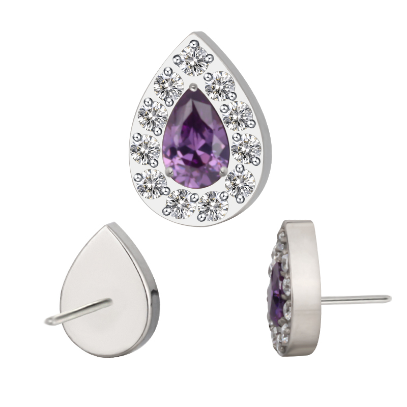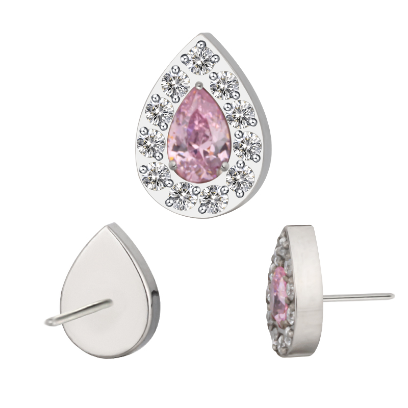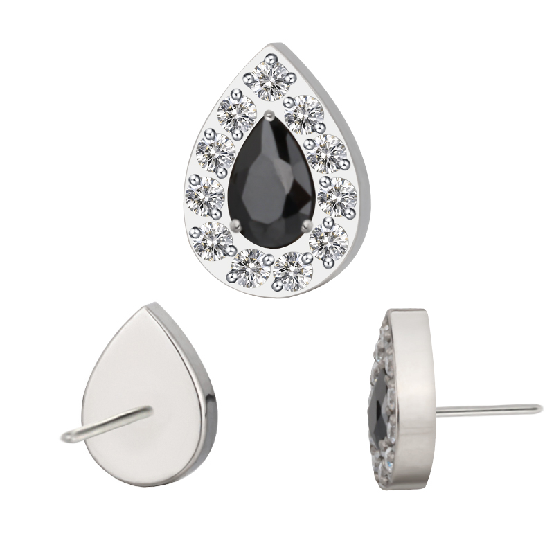 Titanium Push In CZ Paved Pear With Pear CZ Center Threadless Top