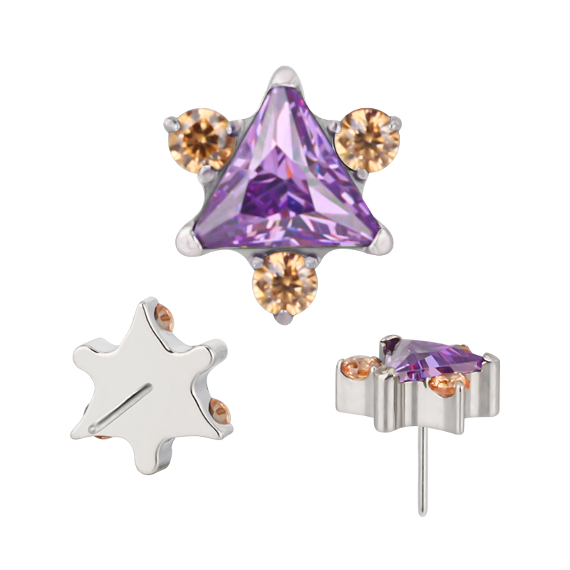 Titanium Push In CNC Set Triangle CZ With 3 CZ Arround Thraedless Top