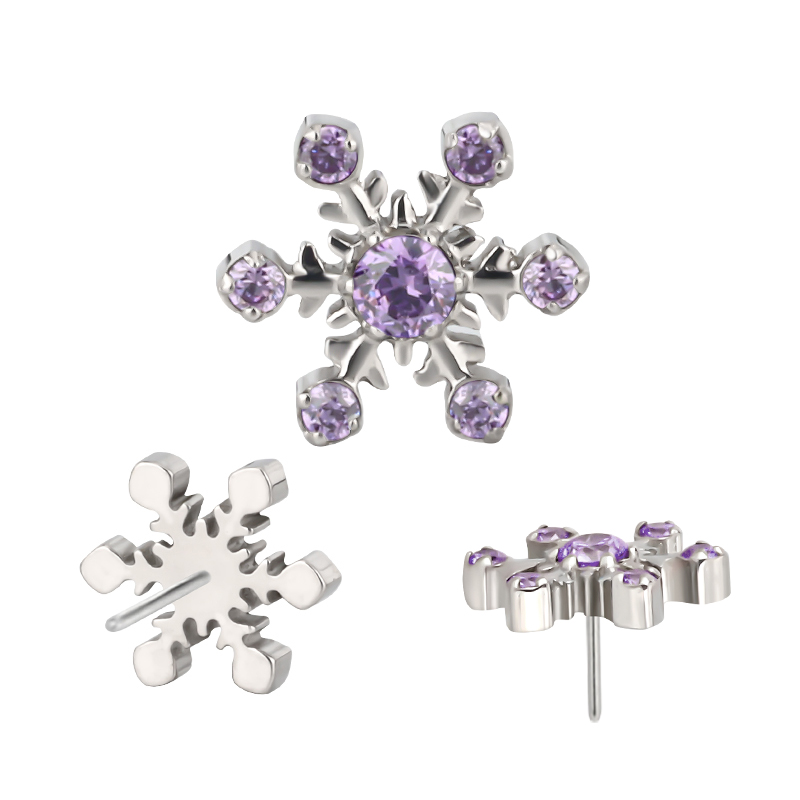 Titanium Push In CNC Set 6 CZ Snowflake Theadless Top