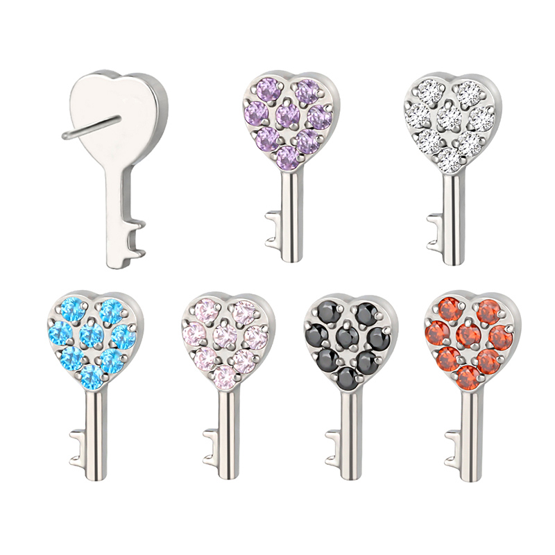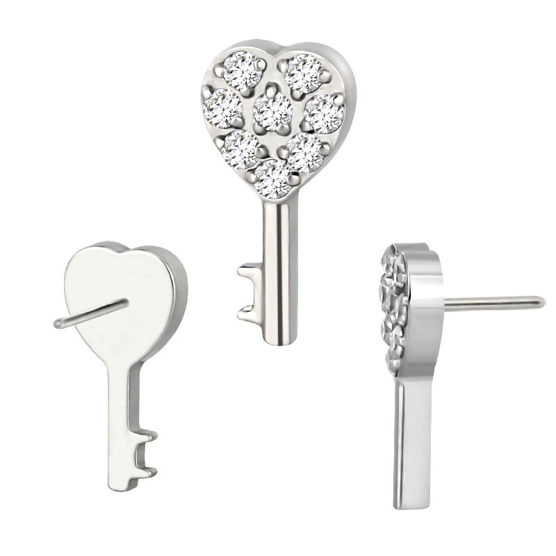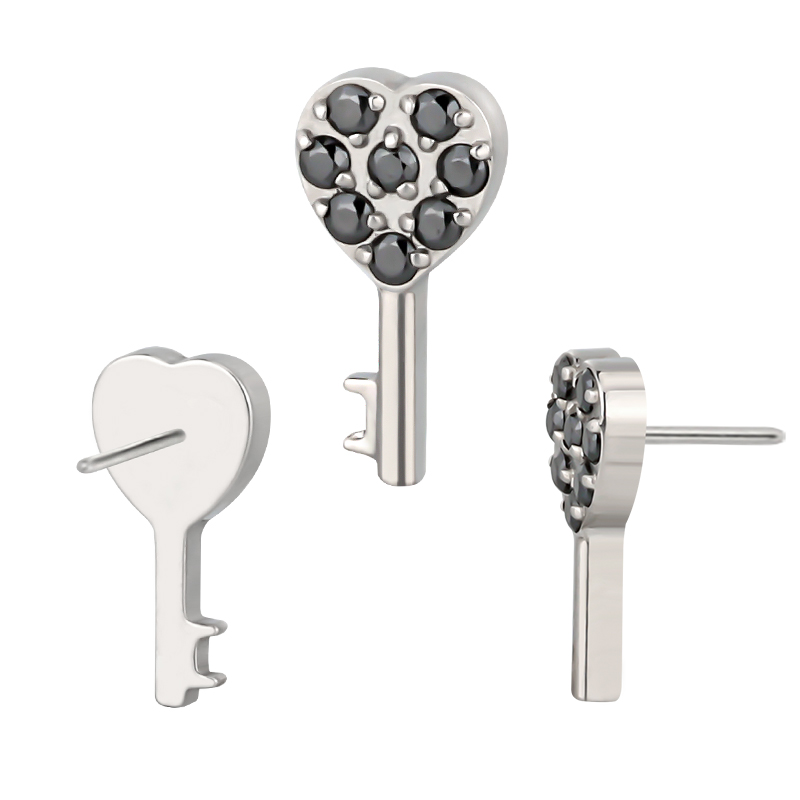 Titanium Push In CZ Paved CNC Heart Key Threadless Top