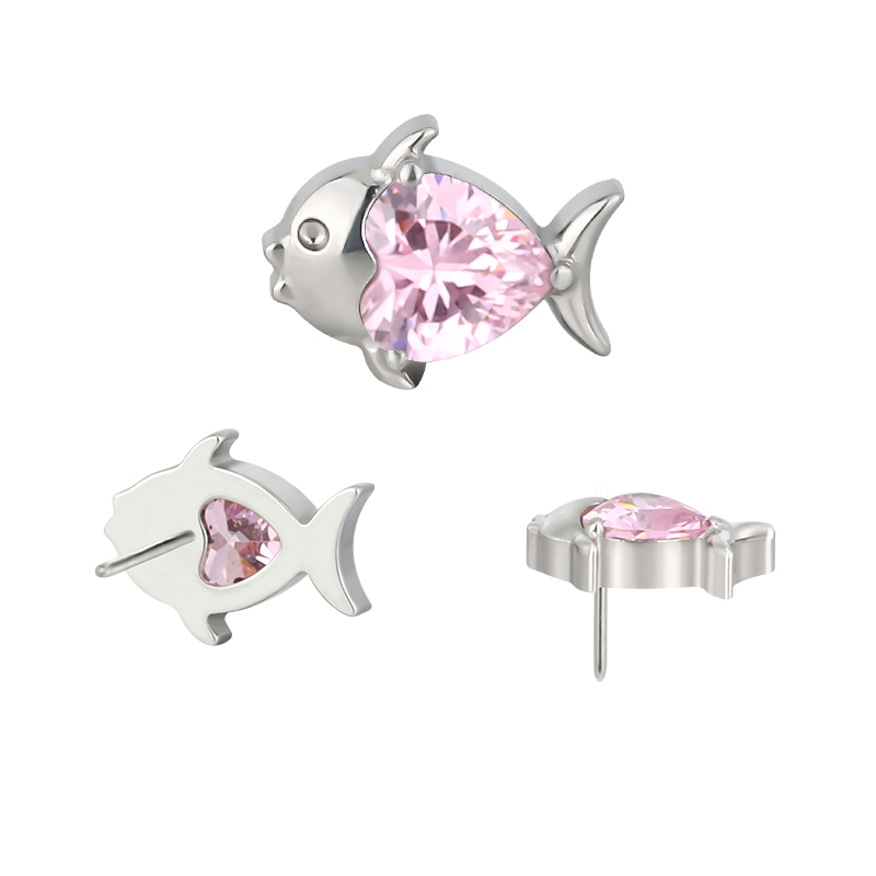 Titanium Push In CNC Set CZ Fish Threadless Top