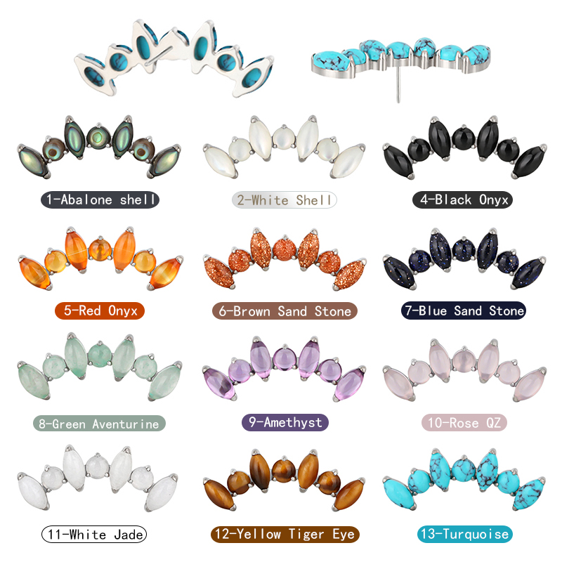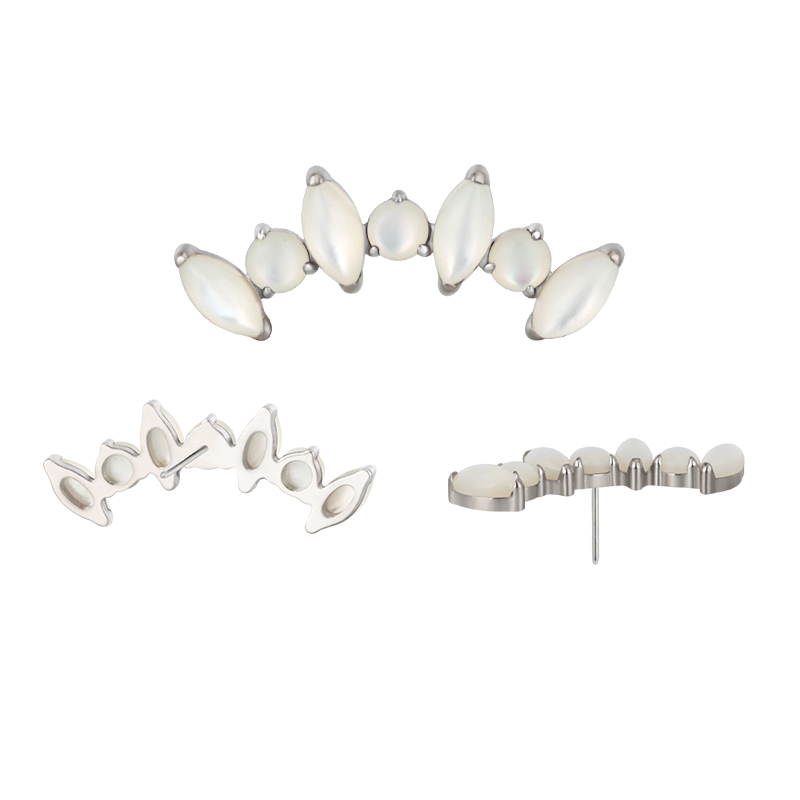 Titanium Push In Bezel Set 4 Natural Marquise and 3 Round Stone Threadless Top