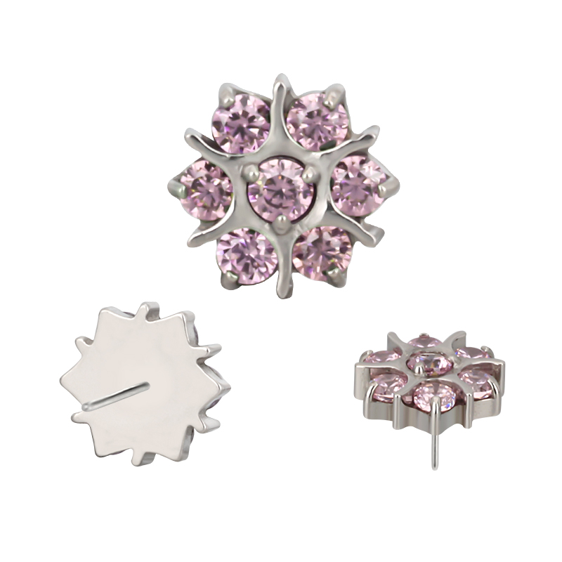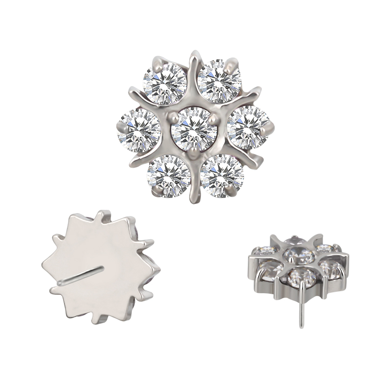 Titanium Push In 7 CZ Paved Flower Threadless Top