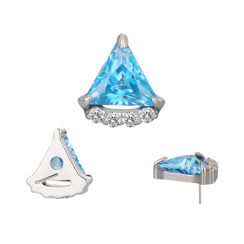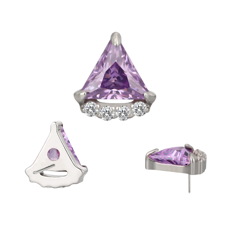 Titanium Push In Bezel Set Triangle CZ and 4 CZ Threadless Top