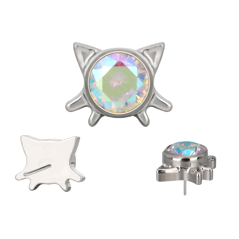 Titanium Push In CNC Set Cat With CZ Center Threadless Top