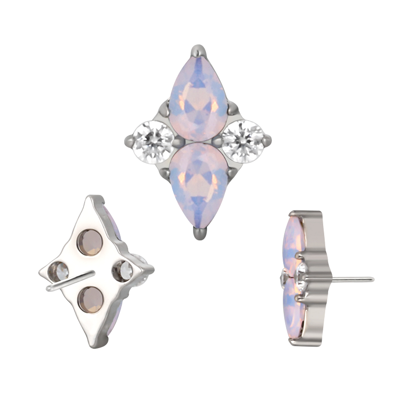 Titanium Push In Bezel Set 2 Pear Nature Stone and 2 CZ Threadless Top