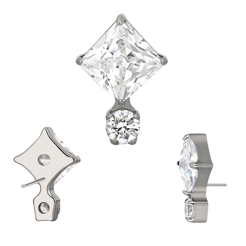 Titanium Push In Bezel Set Square CZ and Round CZ Threadless Top