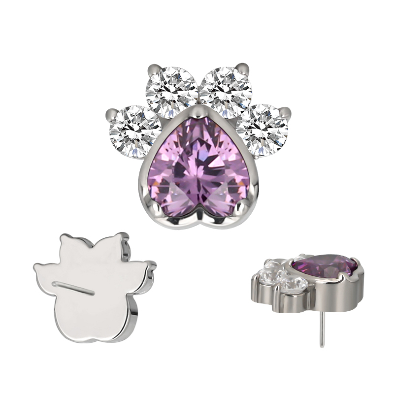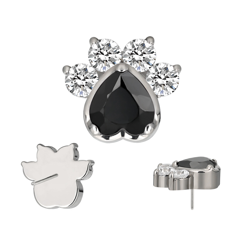 Titanium Push In CNC Set Cat Claw With Heart CZ Center Threadless Top