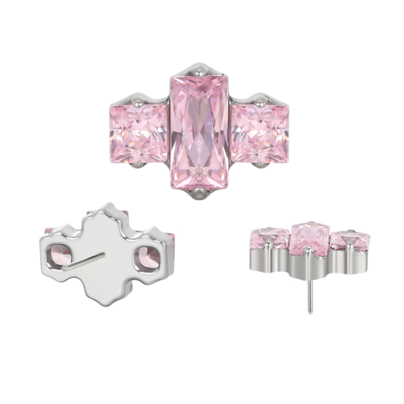 Titanium Push In 2 Square CZ With Rectangle CZ Center Threadless Top