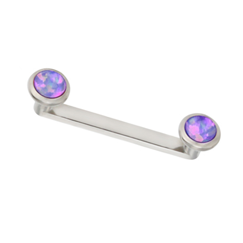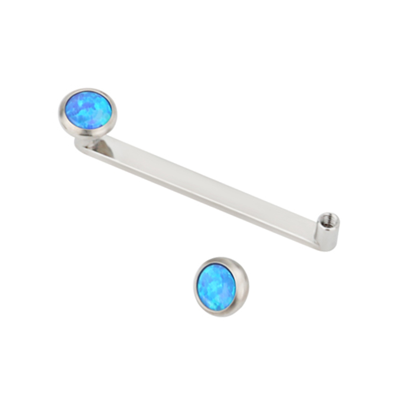 Titanium Flat Surface Bar With Flat Bezel Set Opal Stone End