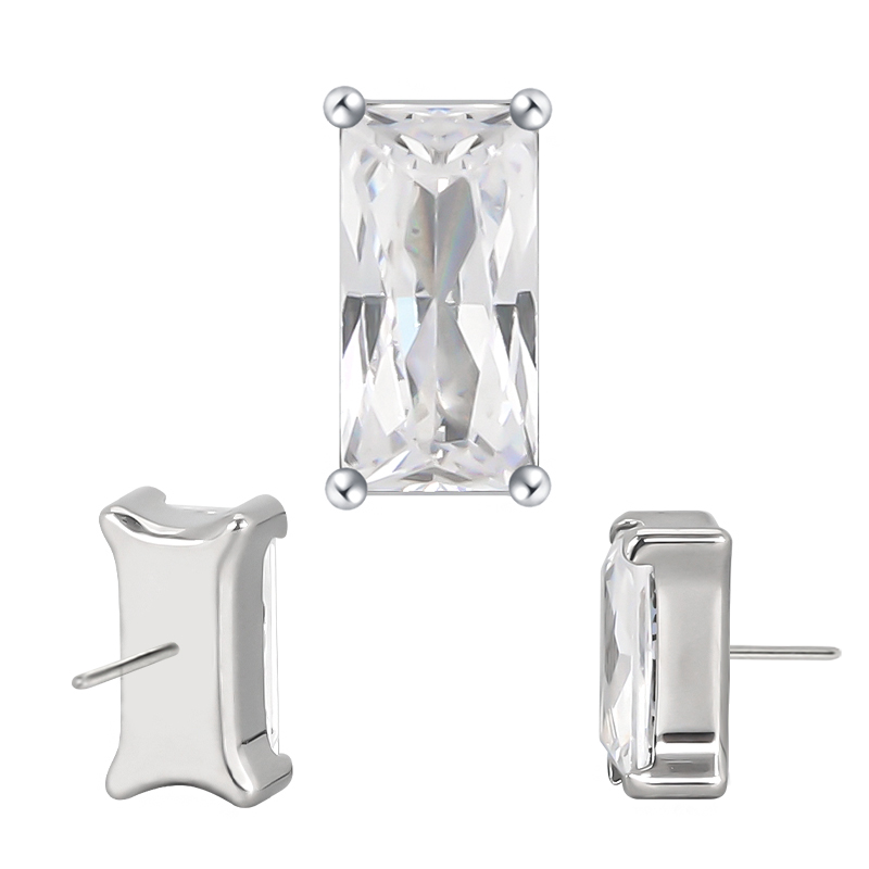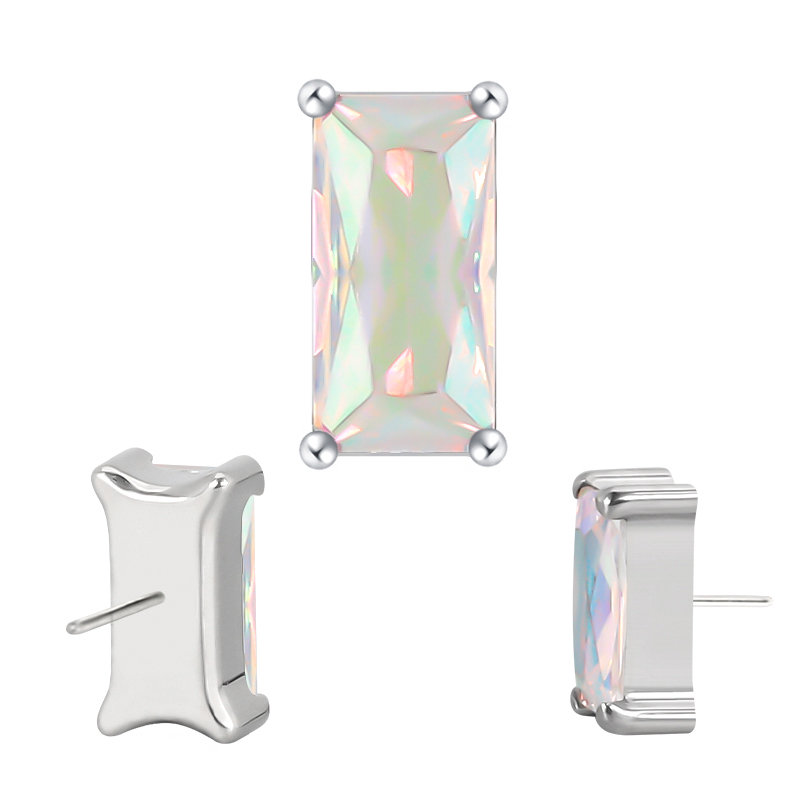 Titanium Push In CNC Set Rectangle CZ Threadless Top
