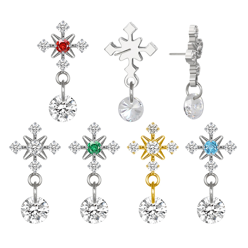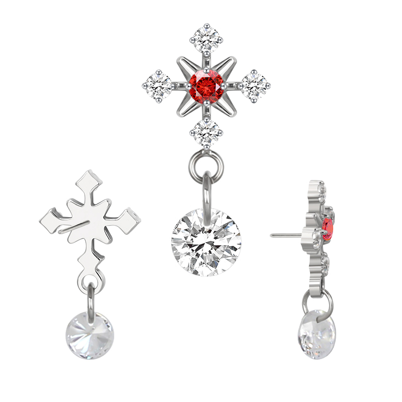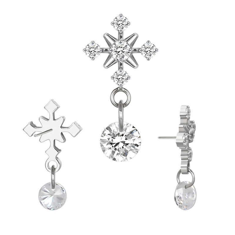Titanium Push In CZ Star With Round CZ Dangle Threadless Top